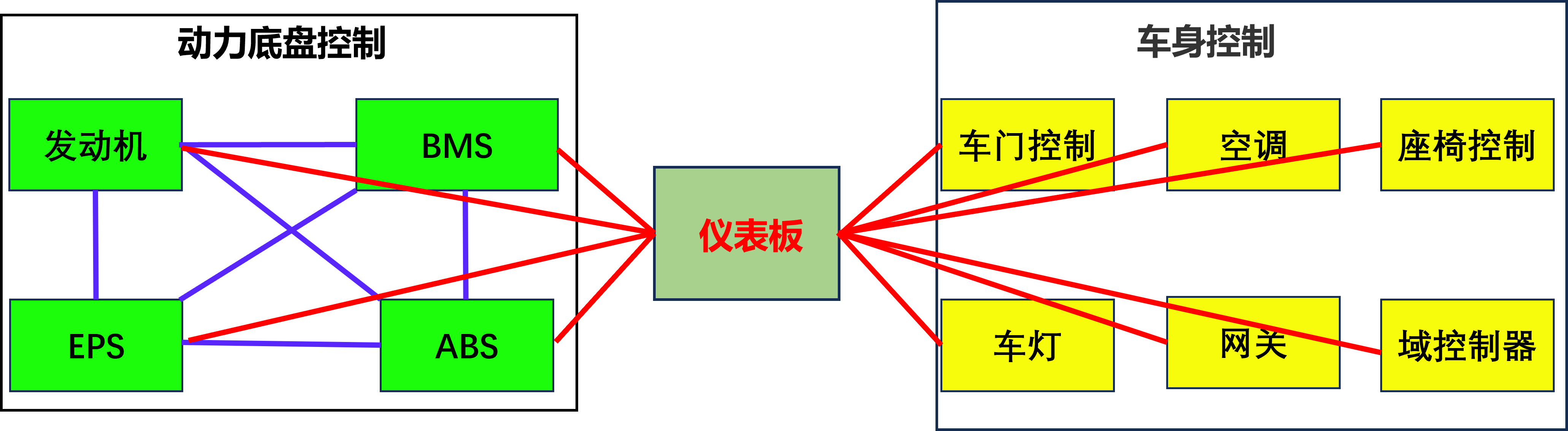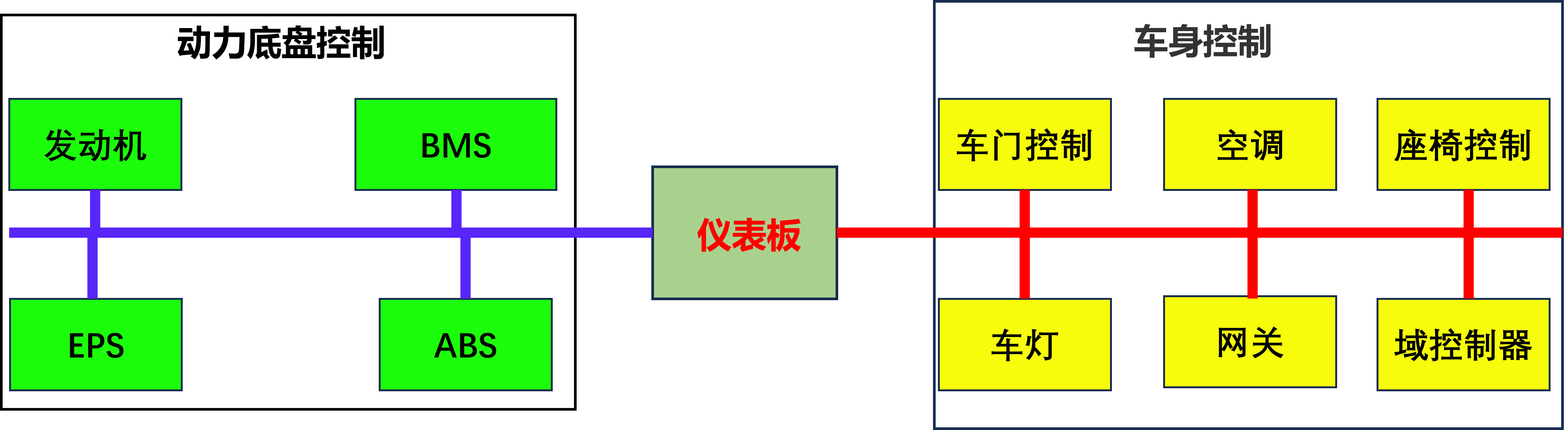 作为解决此问题的对策,引入了多点通信协议。通过引入CAN多点通信协议,可以在不增加配线的前提下接入更多的传感器和执行器。但是,对于传感器和执行器的局域网络通信不需要像动力系统和底盘系统那样对于通信速率和可靠性上有很高的要求,从成本来看未必是最合适的设计,于是就有了LIN(Local Interconnect Network),通过采用LIN可以构筑简单、低成本的局域网络,如图3所示。