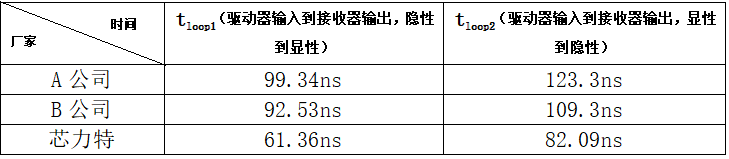 对比目前市面上几家进口公司的同类芯片的环路延时数据,如下表所示:(以下数据在相同环境下测试)