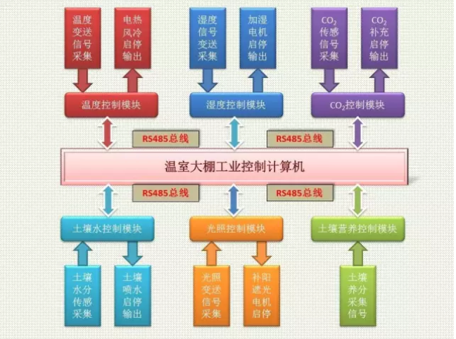 利用RS-485总线的构成的分布式数据采集系统,具有连接线路简单,设备成本低等优点,系统对现场监测节点实现对温度、湿度、CO2浓度等数据测量与显示,并将环境因子控制在作物生长的最佳范围。